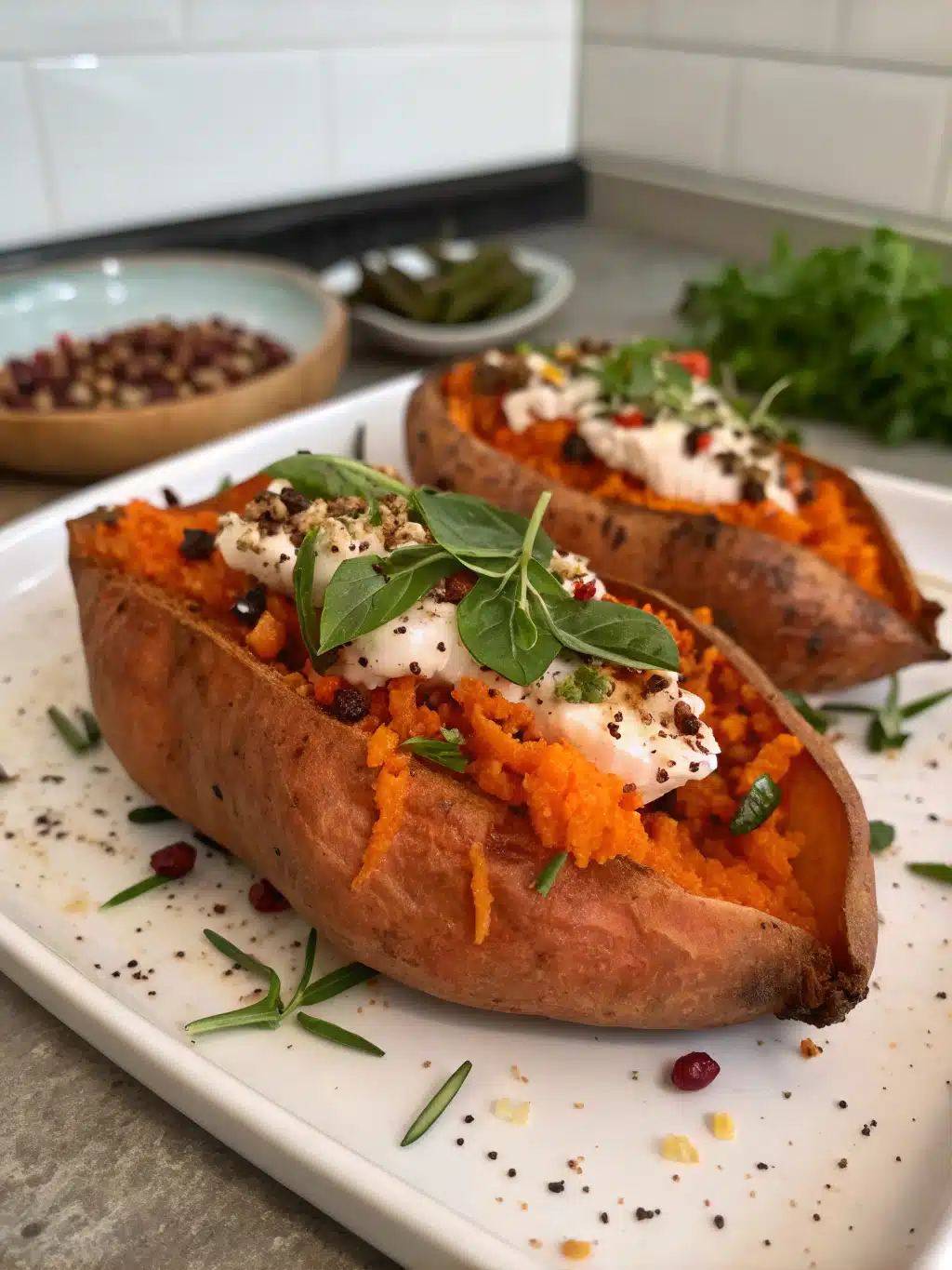 Lower-Carb Modification: While sweet potatoes are naturally carbohydrate-rich, you can scoop out about one-third of the roasted flesh before stuffing, reducing carbs by approximately 12g per serving.